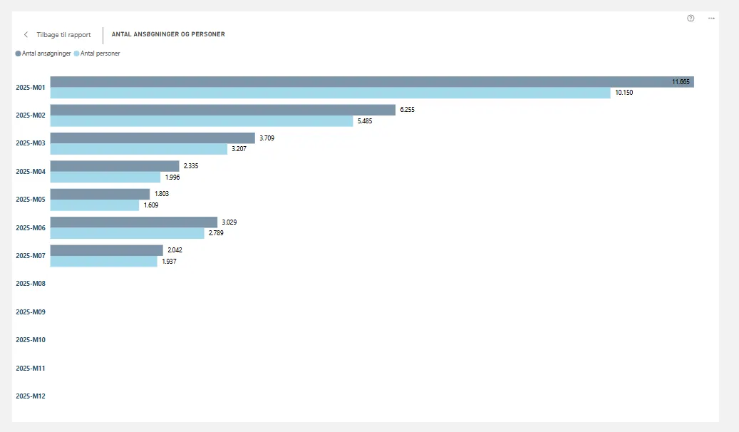 Nedenfor er rapportdelen Antal ansøgninger og personer valgt: